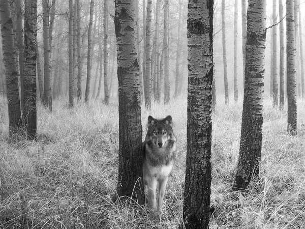 Je n'avais jamais rencontré de loup lors de mes pérégrinations jusqu'à ce que, lors d'une battue, je me retrouve isolé. Je cherchais à rejoindre le groupe, me perdant encore plus dans la toundra. C'est alors qu'entre deux bouleaux, il m'apparut. Grand, puissant, magnifique. Je mentirais en disant que je n'ai pas eu peur lorsqu'il se mit à tourner autour de moi mais étrangement, à aucun moment, il ne se fit menaçant. Il avait l'air de vouloir me faire comprendre quelque chose. Il me tourna le dos, partit, revient, repartit comme s'il voulait que je le suive. Et je le suivis, sans savoir pourquoi. Je le suivis entre les bosquets de bouleaux, dans l'herbe jaune dans laquelle il semblait flairer quelque piste. Je le suivis en confiance et soudains vis déboucher la plaine, à la lisière de la forêt. Il m'avait ramené au campement.