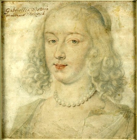 Gabrielle d'Estrée fut décrite comme « presque reine », « blonde, dorée, d’une taille admirable, d’un teint d’une blancheur éclatante » (Mademoiselle de Guise), « blonde aux yeux bleus, aux sourcils admirablement dessinés, avenante et potelée » (François Bluche), « belle mignonne un peu fade et sans trop d’esprit » (Jean-Pierre Babelon).